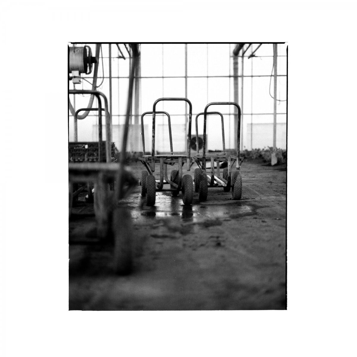 The first analog film. Training of the eye. A photo, everything has to be right. The view through the viewfinder, from above but mirror-inverted. One film, ten pictures. The motif, a greenhouse in Tägerwilen - Switzerland.